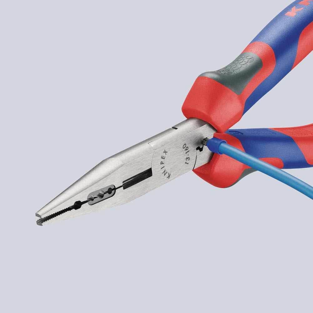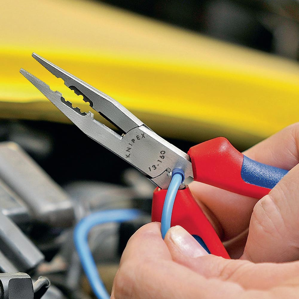 ideale Zange bei Verkabelungsarbeiten · zum Greifen und Biegen von Drähten · zum Crimpen von Aderendhülsen · Schneiden zusätzlich induktiv gehärtet, Schneidenhärte ca. 60 HRC · Vanadin-Elektrostahl, geschmiedet, mehrstufig ölgehärtet