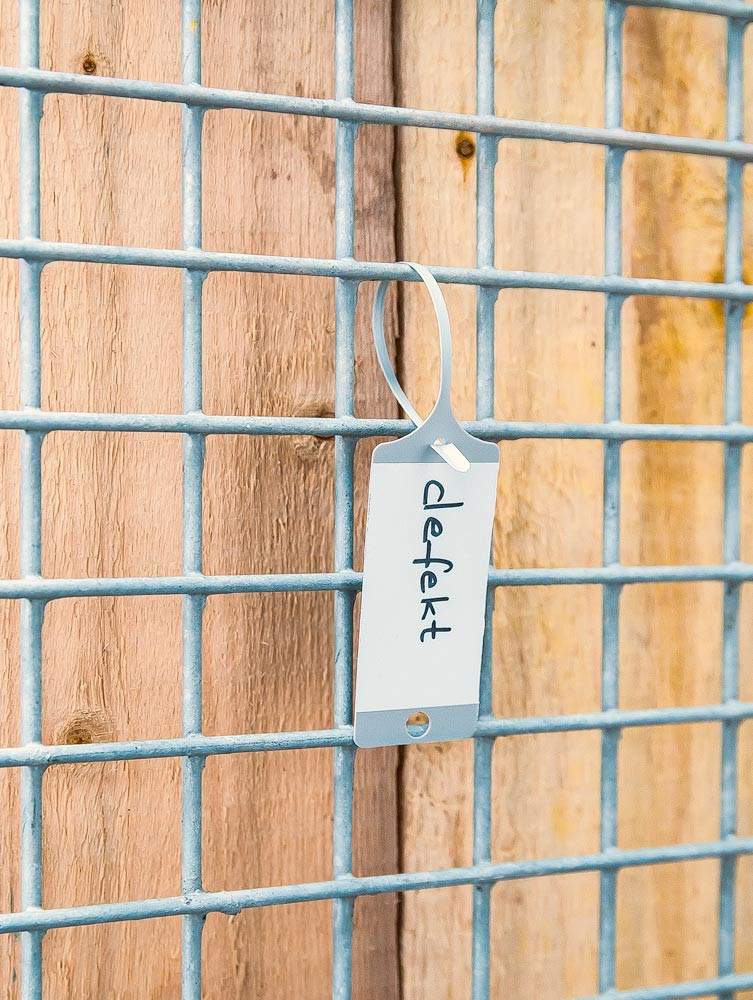 · Ausführliche Informationen oder Hinweise können direkt am Gegenstand fixiert werden · Ideal für den Wareneingang, Warenausgang, Lager oder Produktion · Aus wetterfester Polypropylen-Folie · Für den Innen- und Außeneinsatz geeignet · Vorlochung für eine schnelle Anbringung · Mit Kugelschreiber beschriftbar · Abmessung Fahne B x H 35 x 80 mm