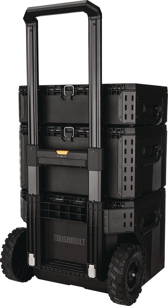 3-teilig · mit abnehmbarer, stapelbare Werkzeugboxen, 1 x mit Rollen · selbstausrichtend · automatische Verriegelung arretiert, wenn die Werkzeugkiste einrastet - 2 Verriegelungsmöglichkeiten an jeder Werkzeugkiste, passend für alle gängigen Schlösser · Schiebeschalter öffnet die Kiste oder zeigt an, wenn die Werkzeugkiste verriegelt und transportfähig ist · große, mittige Schnappöffnung erlaubt einen schnellen Zugriff auf deine Werkzeuge · hochwertige Konstruktion aus Polymer und pulverbeschichtete Stahlecken inkl. stahlverstärktem Deckel · abnehmbarer Teleskop-Handgriff und geländegängige Bereifung · passend zu Art.-Nr.