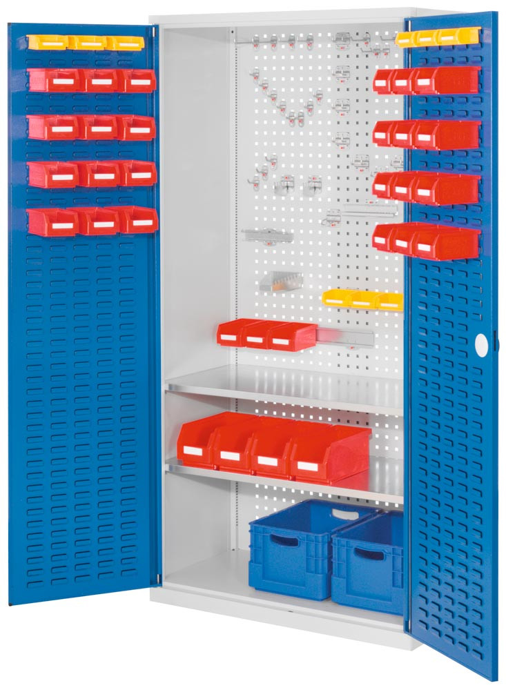 Werkzeugschrank, Türen mit Schlitzplatten, BxTxH 1000x500x1950 mm, 2 Fachböden, RAL 7035/5010