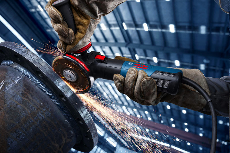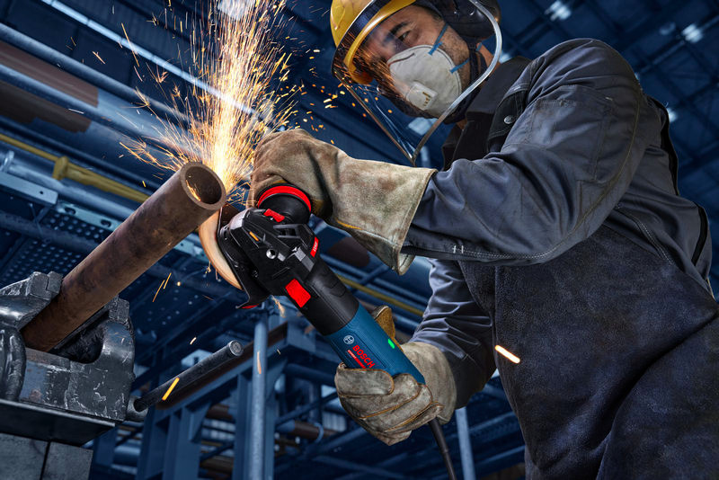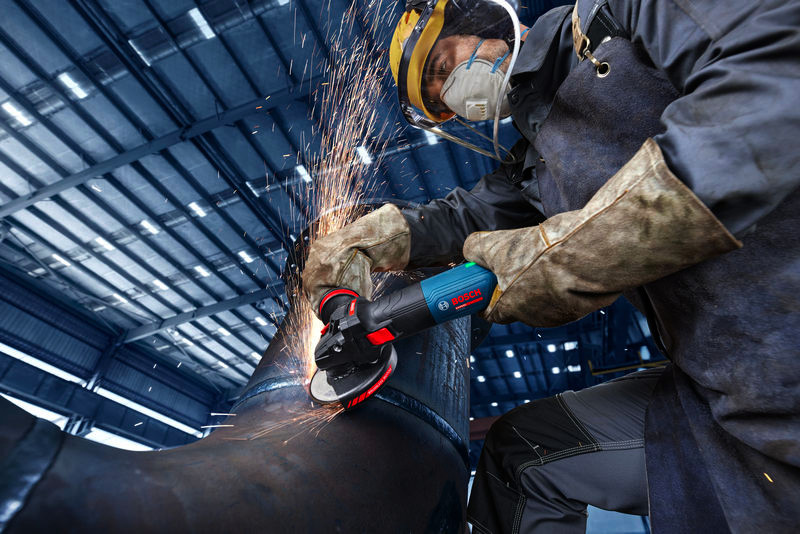 Winkelschleifer EXWS20-125TSB, Der EXPERT EXWS20-125TSB liefert mit seiner hohen Eingangsleistung von 2.000 W maximale Leistung. Dieses EXPERT-Werkzeug bietet dank seines bürstenlosen Motors eine lange Lebensdauer und einen geringeren Wartungsaufwand. Es besticht durch seine herausragende Ergonomie und hat den geringsten Griffumfang im größten Leistungsbereich für kleine Winkelschleifer. Der EXPERT EXWS20-125TSB bietet den besten Anwenderschutz seiner Klasse. Dafür sorgen verschiedene fortschrittliche Schutzfunktionen, wie z. B. KickBack Control (stoppt den Motor bei blockierendem Werkzeug), Drop Control (schaltet den Motor ab, wenn das Werkzeug herunterfällt), Wiederanlaufschutz (verhindert das Wiederanlaufen nach einer Stromunterbrechung), Überlastungsschutz (schützt vor Überhitzen), Sanftanlauf und ein Bremssystem. Du kannst jede Aufgabe mit Hilfe der LED-Leuchte, die den aktuellen Werkzeugzustand angibt, optimieren. Dieses Werkzeug besitzt eine verbesserte Direktkühlung und Temperaturüberwachung und bietet einen besseren Staubschutz mit abnehmbarem Staubfilter. Der EXPERT EXWS20-125SB ist das ideale Werkzeug für Metallbauer, die im industriellen Umfeld arbeiten. Hauptanwendungsbereiche sind Schleifen/Trennen von Gusseisen, Schleifen von Formen, Entgraten von Oberflächen sowie Bearbeiten von Schweißnähten und Spritzern. Vibration Control-Zusatzhandgriff (1 602 025 0A0). Spannmutter (1 603 345 043). Zweilochmutterndreher (1 607 950 052). SDS-Schnellspannmutter (1 603 340 031)