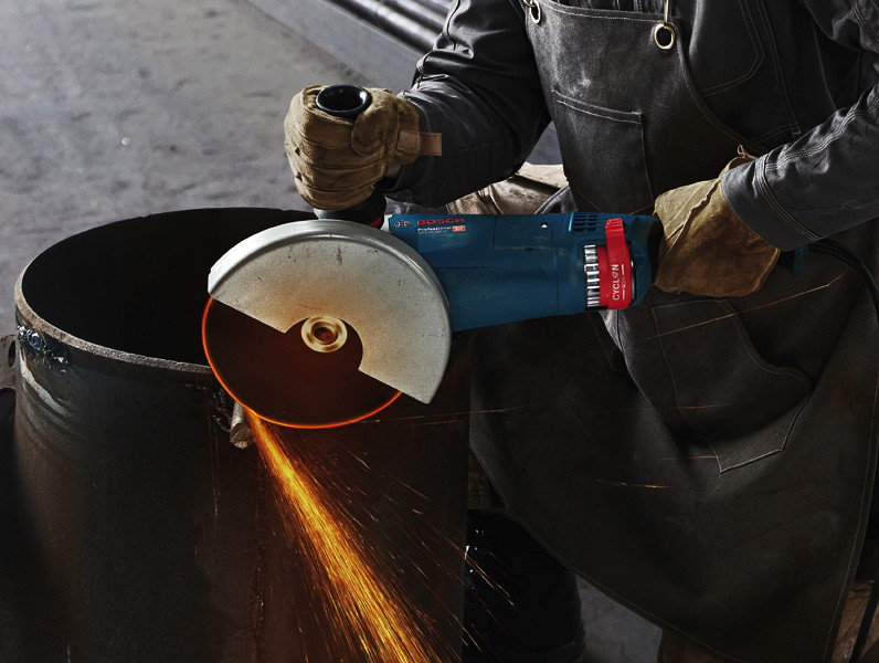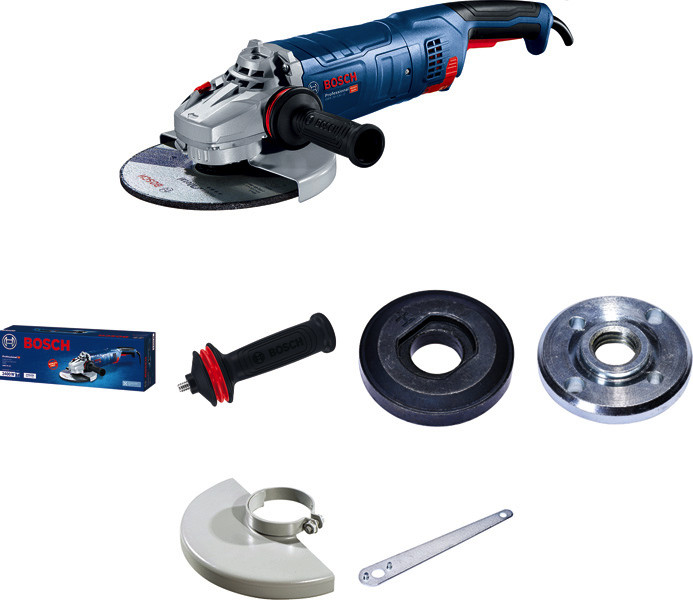 Winkelschleifer GWS 24-230 JZ, Der neue GWS 24 JZ Professional entfesselt 2.400 W volle Power, mit der du deine Arbeit schneller erledigst, während der CYCLON TECH-Staubschutz die Motorlebensdauer erhöht! Der neue Motor liefert eine bis zu zweimal höhere Abtragsleistung, so dass die Arbeit schneller erledigt ist. CYCLON TECH ist der welterste Staubschutz, der bis zu 90 % des Staubs aus der Kühlluft entfernt, und dabei die Motorlebensdauer bei extrem staubigen Arbeitsbedingungen bis um das Dreifache erhöht. Der Vibration Control-Zusatzhandgriff sorgt für noch mehr Anwenderkomfort. Wiederanlaufschutz und Sanftanlauf tragen zum Anwenderschutz bei, während der Überlastschutz das Werkzeug bei längerer Überlastung abschaltet. Der GWS 24 bietet erstklassige Leistung in Metall- und Bauanwendungen durch eine bis zu 2-mal höhere Materialabtragsleistung, sodass die Arbeit schneller erledigt wird! Der GWS 24-230 JZ Professional verfügt über Wiederanlaufschutz und Sanftanlauf für erhöhten Anwenderschutz. Karton. Abdeckschutz (1 619 P15 668). Zusatzhandgriff (1 602 025 030). Zweilochschlüssel (1 607 950 061). Aufnahmeflansch (ET-Nr. 2 605 703 014). Spannmutter (1 603 345 043)