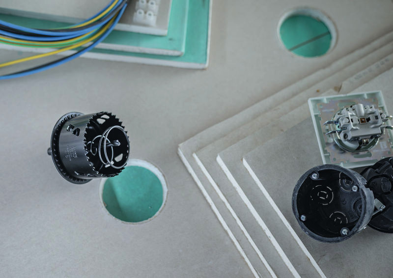 Integrierter Lochrandsenker erleichtert die Montage von runden Steckdosen Elektriker, die Senkbohrungen für die Installation von Elektrokästen schneiden möchten, profitieren von unserer Lochsäge mit Adapter für Holz und Trockenbauwände. Wir haben sie zum Schneiden von Senkbohrungen in Holz und Trockenbauwänden entwickelt.