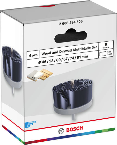 Wood and Drywall Lochsägen-Set mit Aufsteckhalter, 46/53/60/67/74/81 x 31 mm