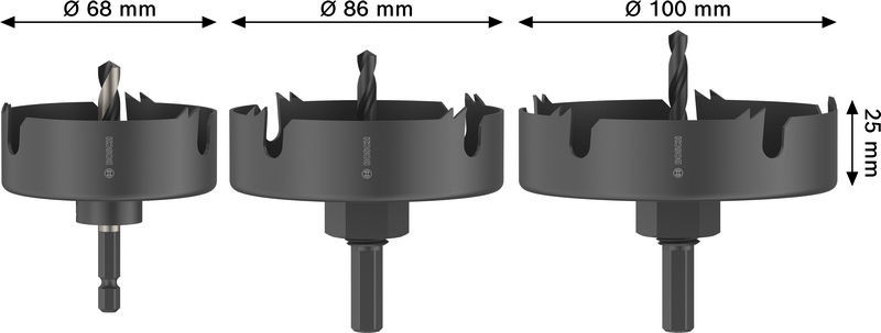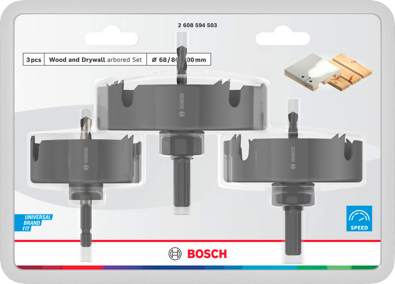 Wood and Drywall Lochsägen-Set mit Aufsteckhalter+Zentrierbohrer, 68/86/100x27mm